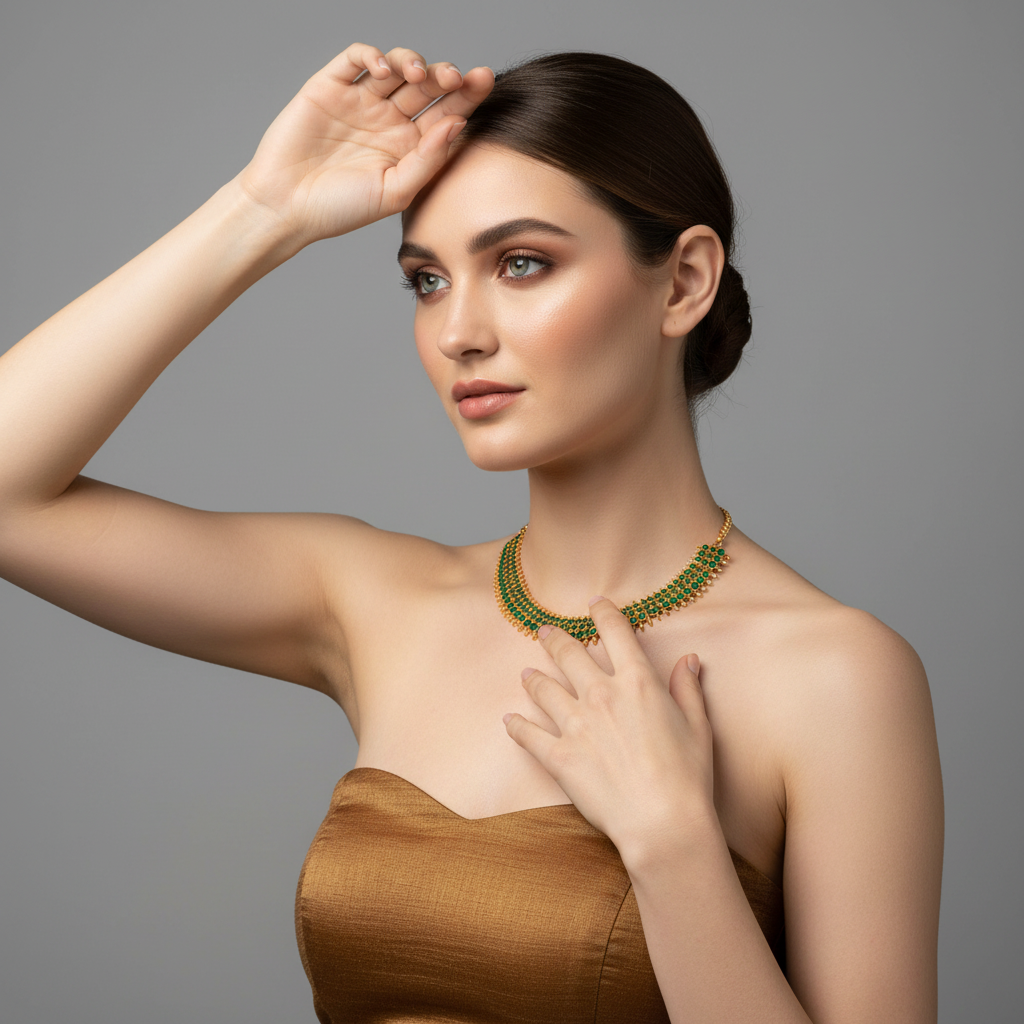 Ideal for weddings, festive occasions, and special celebrations, this neckpiece adds a touch of sophistication and charm to any ensemble. Designed for lasting shine and comfortable wear, it is a valuable addition to your jewelry collection and a piece to be cherished for years to come.