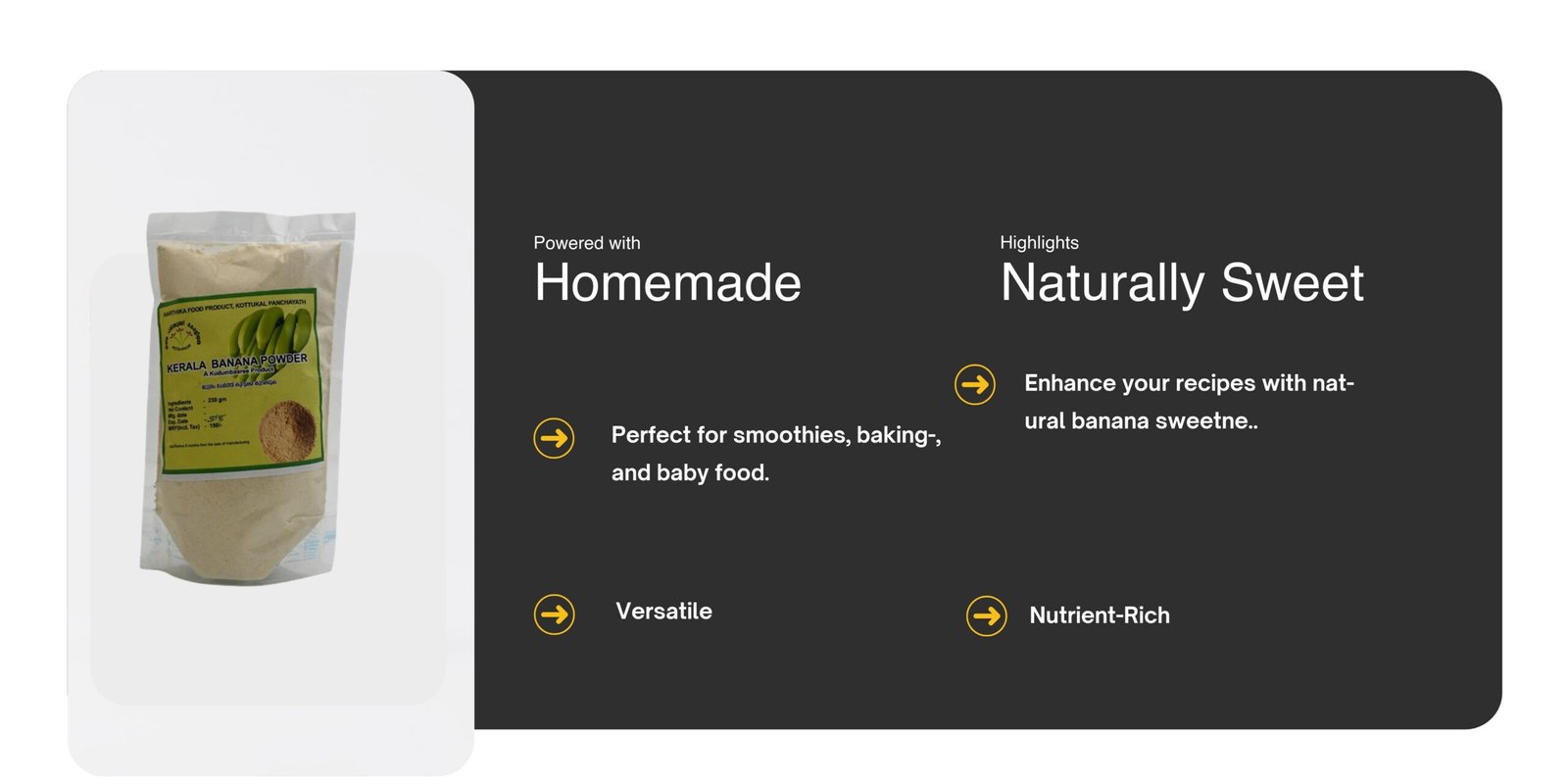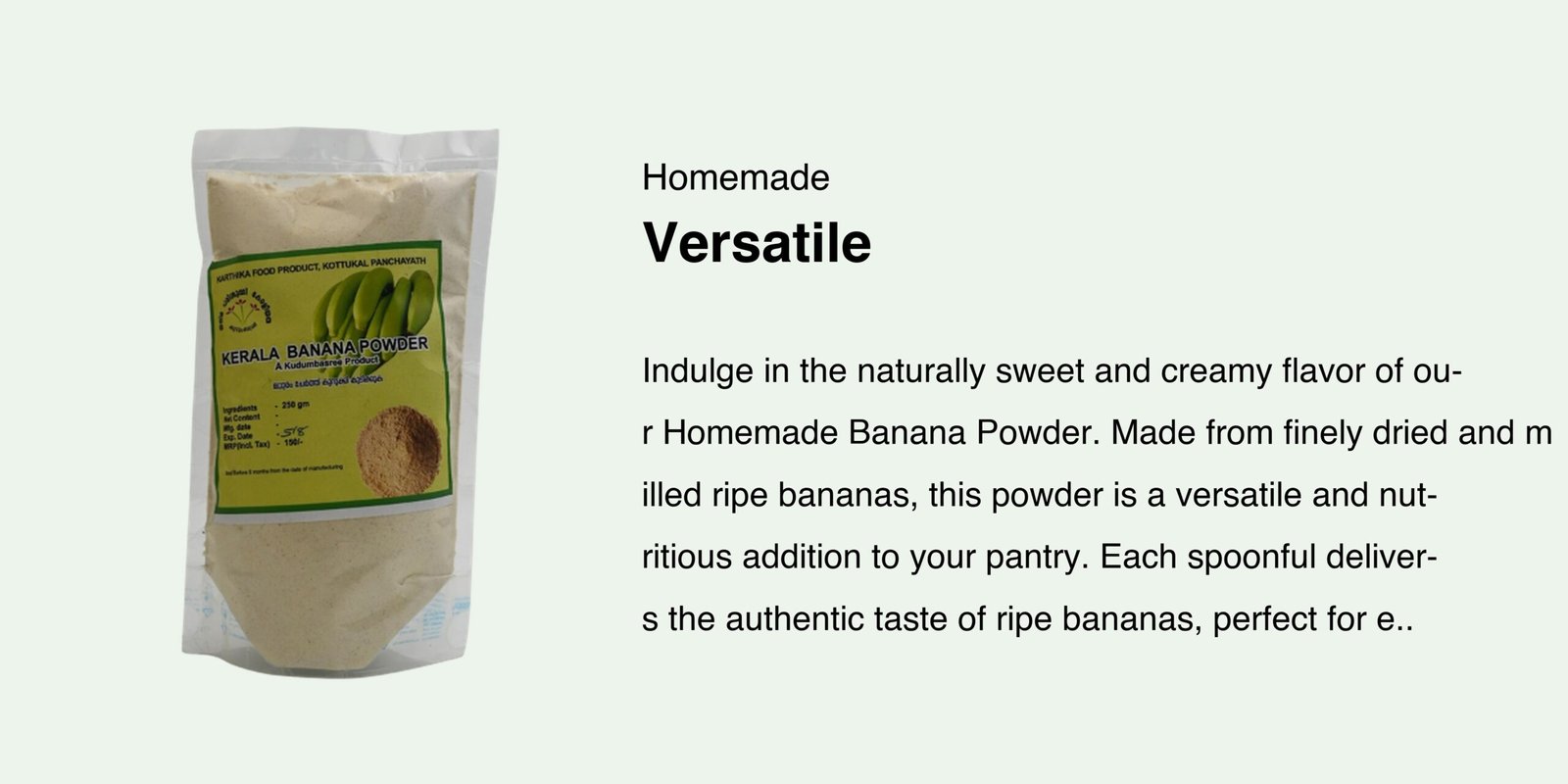 Bring the wholesome goodness of bananas into your daily routine with our pure Banana Powder. Made from carefully selected ripe bananas and finely powdered, it’s perfect for smoothies, baking, baby food, or as a natural flavoring.