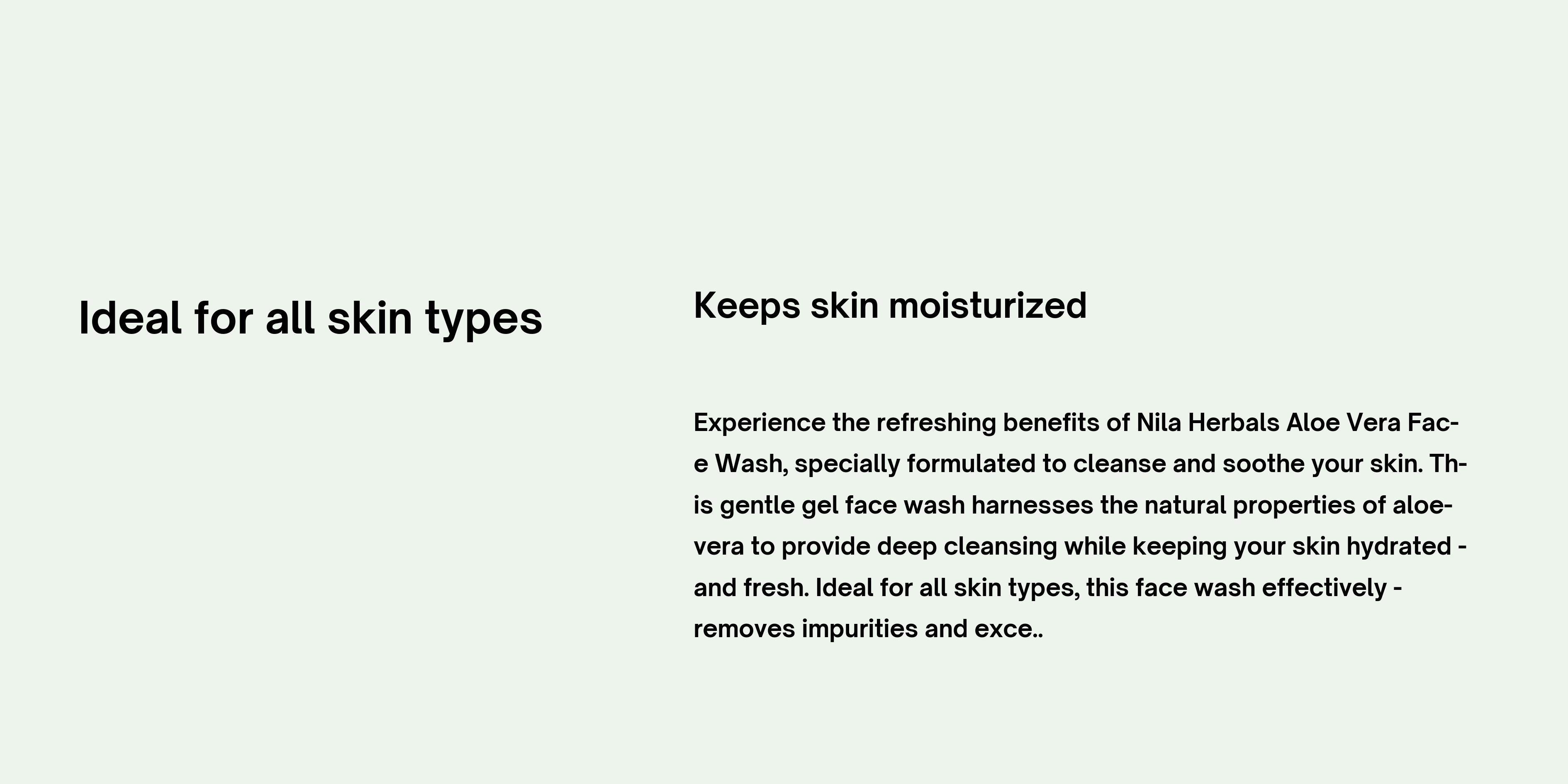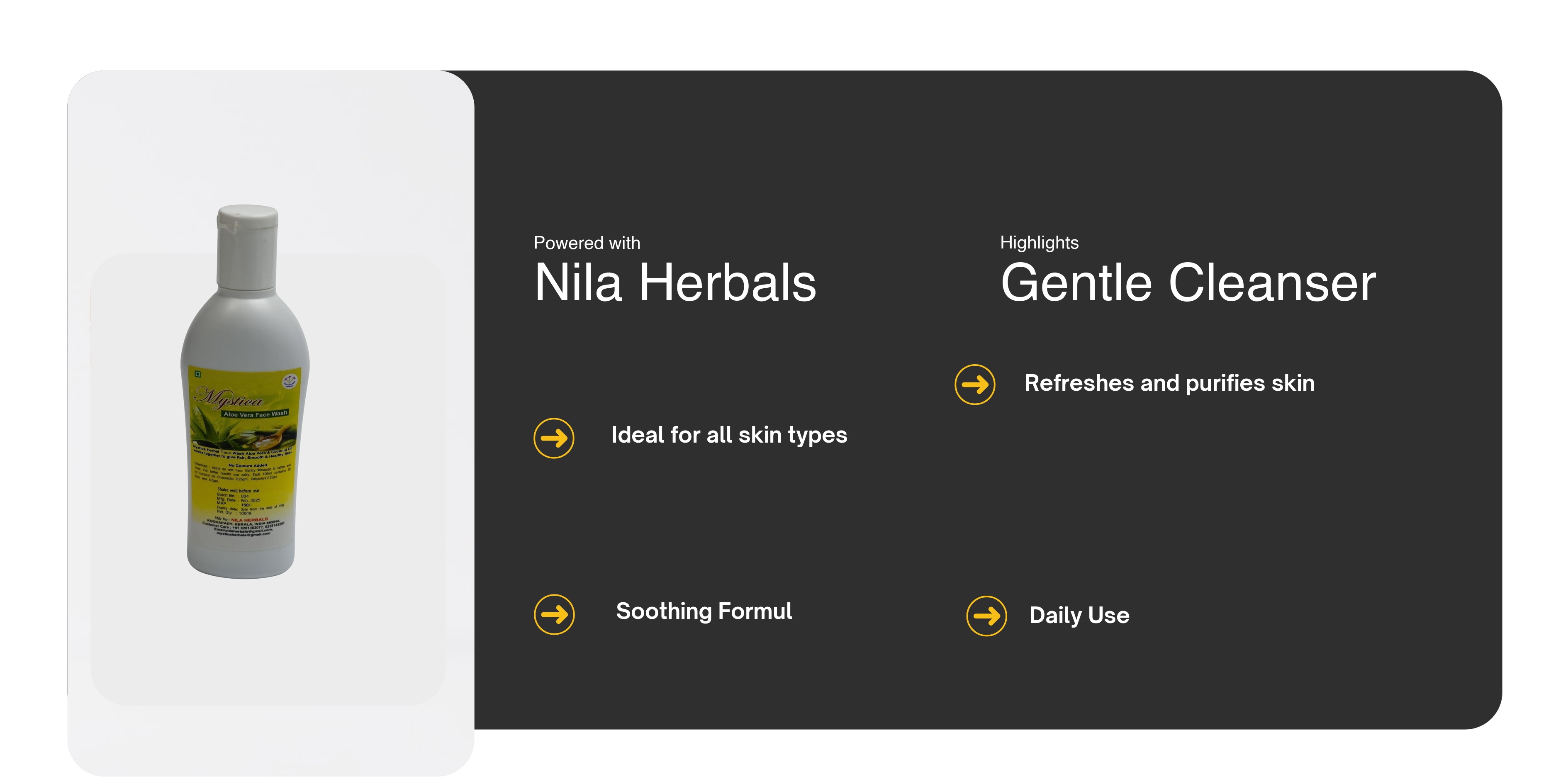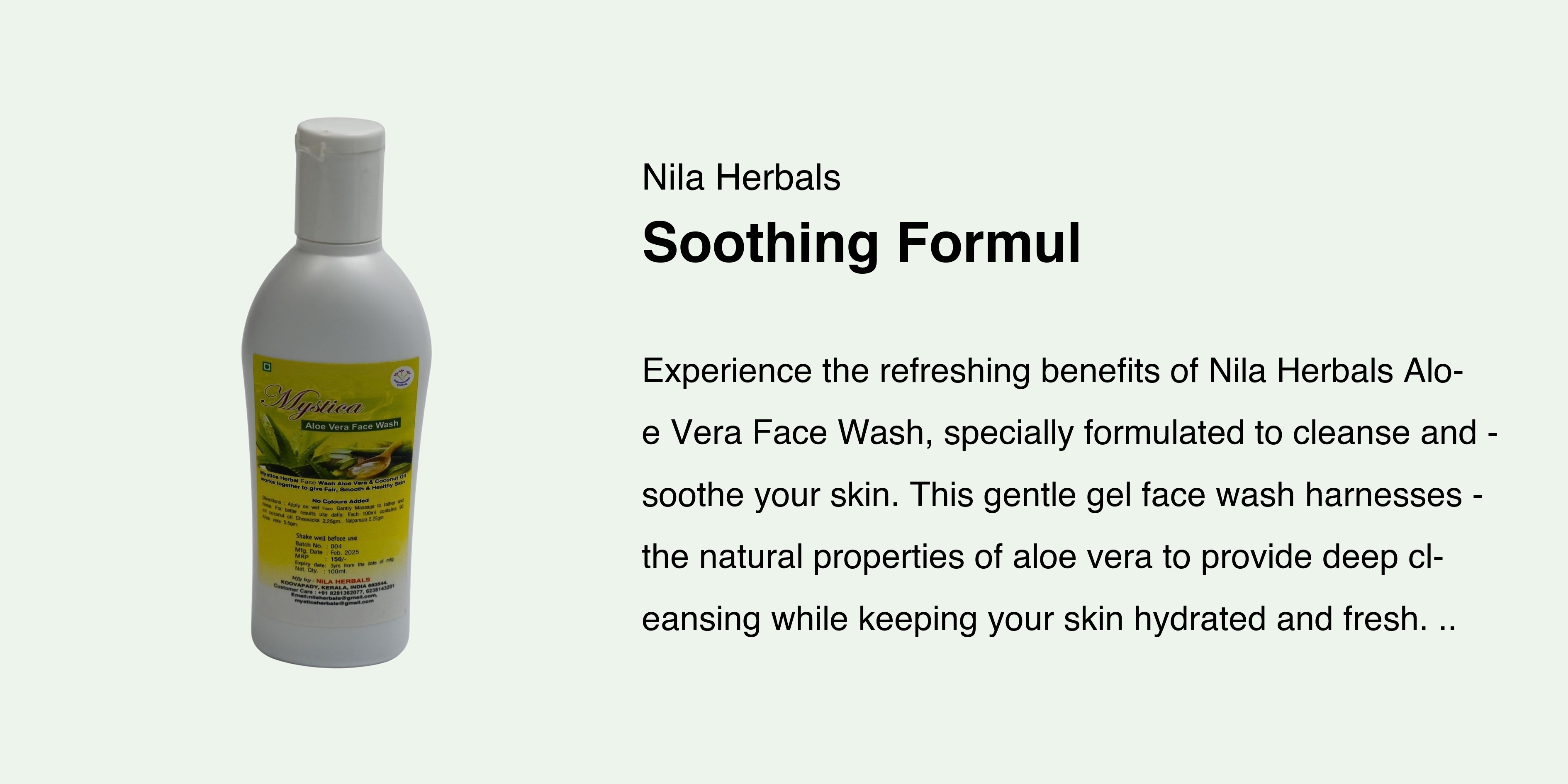 Discover the rejuvenating power of Nila Herbals Aloe Vera Face Wash, a refreshing cleanser designed to cleanse and soothe your skin. This gentle formulation combines the natural healing properties of aloe vera to keep your skin looking soft, fresh, and hydrated all day long. Ideal for all skin types, our face wash eliminates dirt and impurities without stripping your skin’s essential moisture. It helps in maintaining a balanced complexion while providing a soothing effect, making it perfect for daily use. At Nila Herbals, we believe in the power of nature, which is why we harness the goodness of pure aloe vera in every bottle. Enjoy a spa-like experience at home with our easy-to-use face wash, specially crafted to enhance your skincare routine. Whether you are getting ready for a long day ahead or winding down, our aloe vera face wash leaves your skin radiant and nourished. Embrace the essence of natural skincare with Nila Herbals, where every product is crafted with care.
