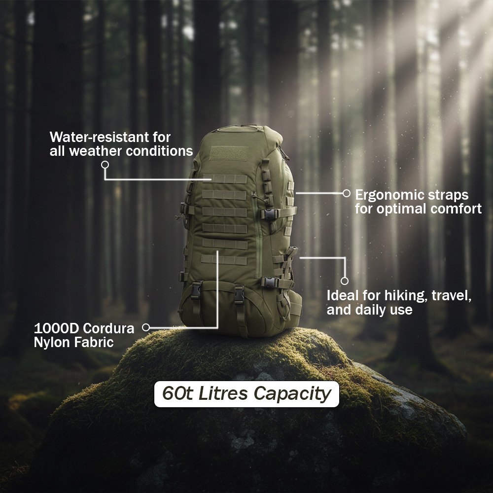 Trekkking Bag 60 L – Durable Olive Green Hiking Rucksack for Outdoor Adventures
