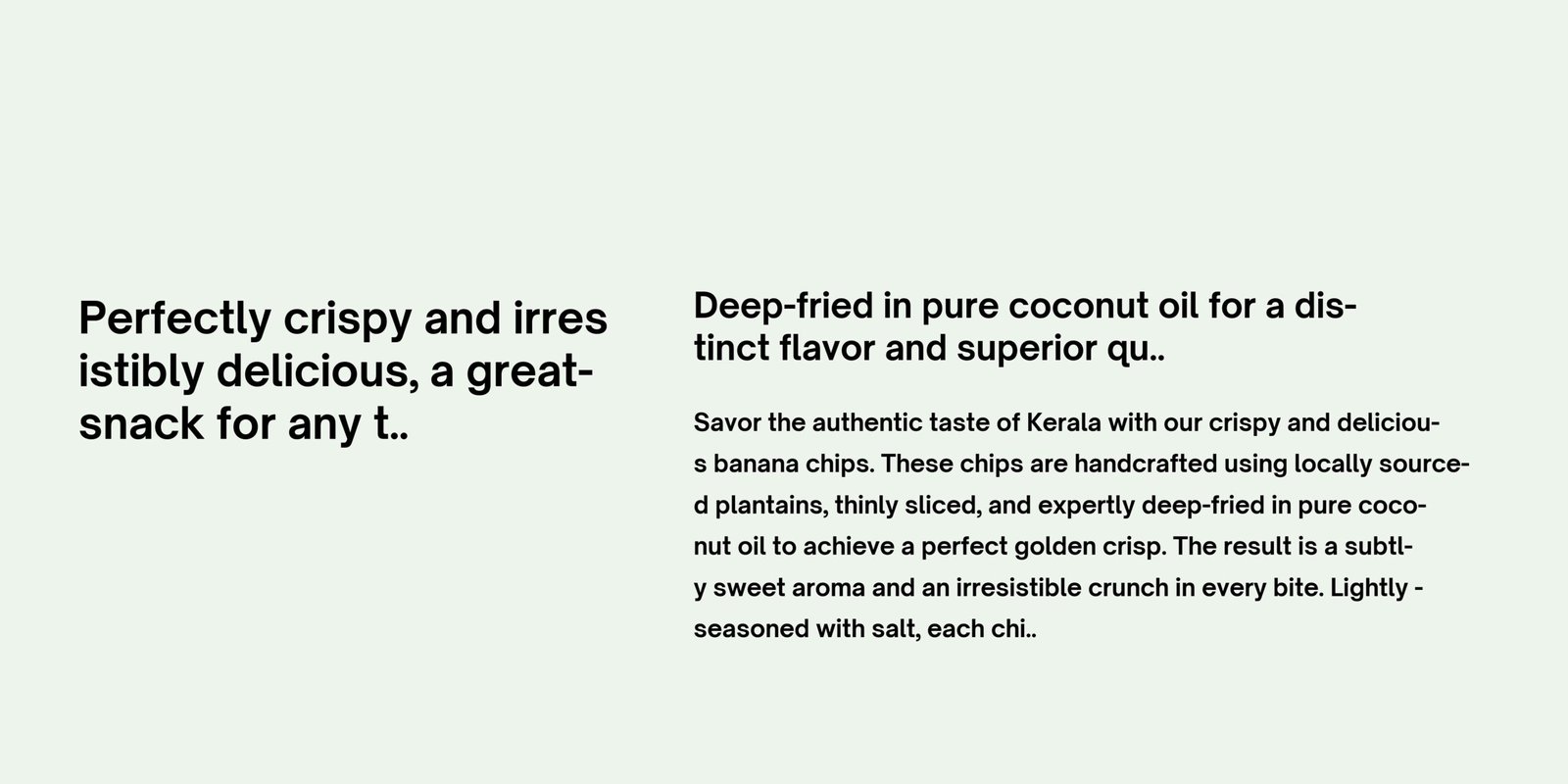 ✔ 100% Natural & Fresh – No artificial preservatives or colors ✔ Crispy & Flavorful – Perfectly fried for a delightful crunch ✔ Traditional Kerala Recipe – Homemade taste with heritage flavor ✔ Healthy Snack – Rich in fiber and natural energy