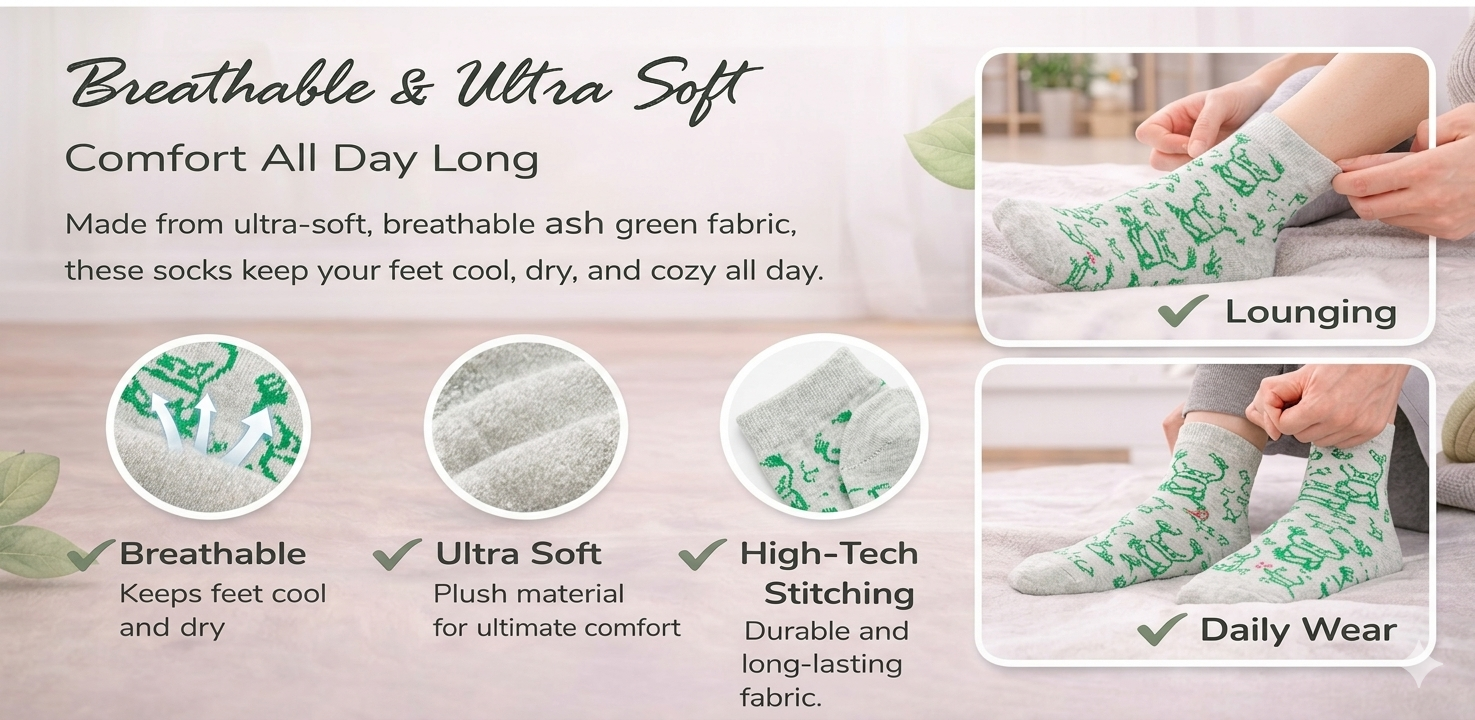Our socks are expertly designed to prevent slipping and bunching, ensuring a snug and secure fit inside any shoe. The reinforced heel and toe offer enhanced durability, making them perfect for prolonged use. Available in versatile colors, they seamlessly complement any outfit, adding a touch of effortless style to your wardrobe.
