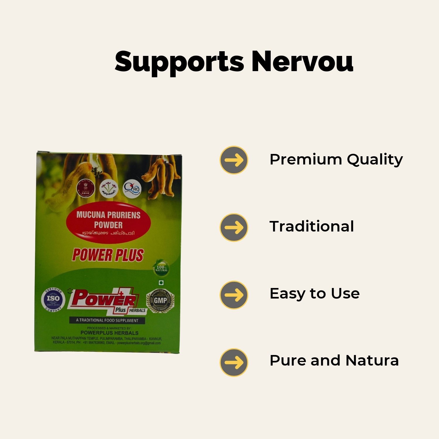 Home/Herbels supplement Powder/Power Plus Mucuna Pruriens Powder – Herbal Supplement for Nervous System Support – 150g