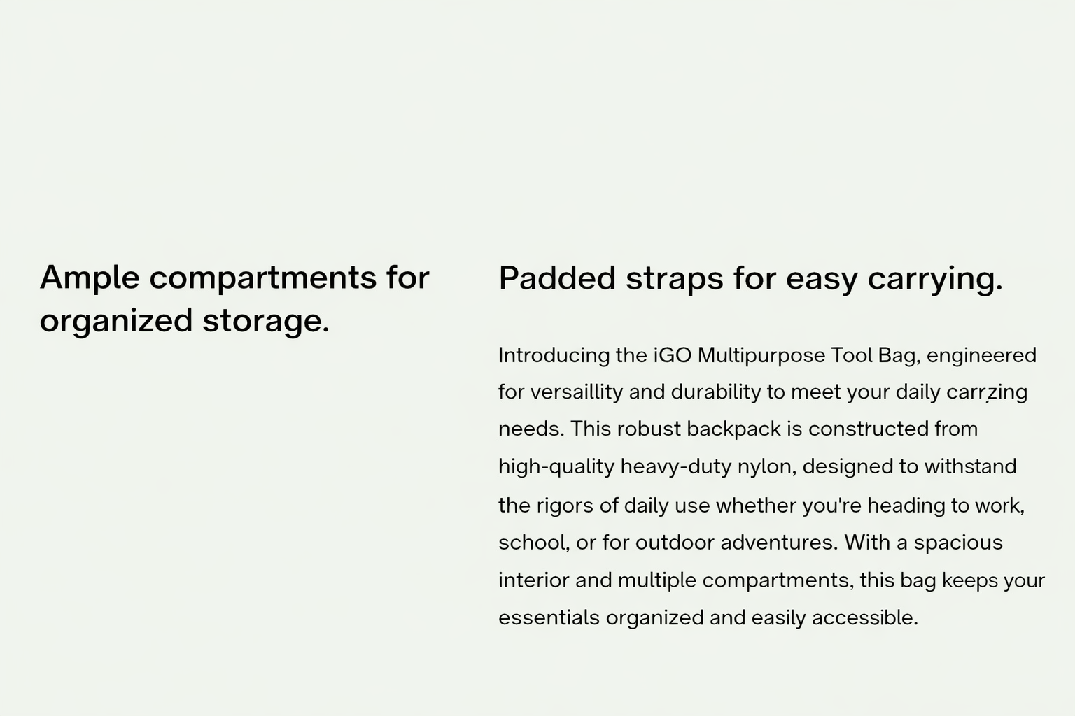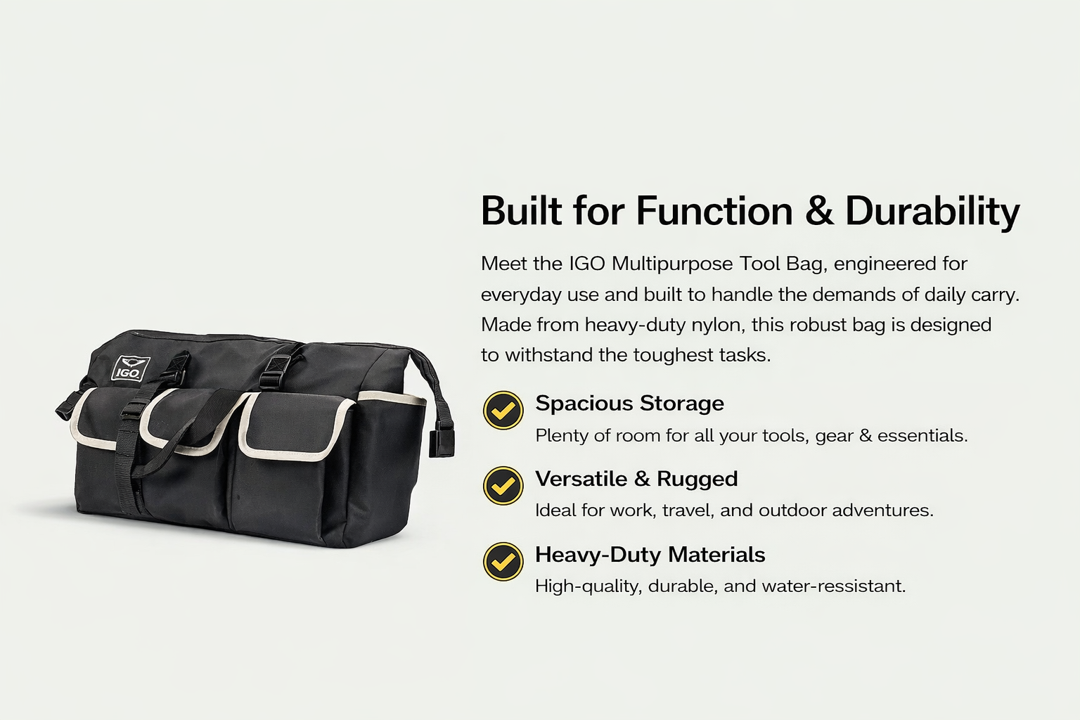 Engineered for substantial use, the backpack is lightweight yet robust, ensuring it withstands heavy-duty tasks without compromising on comfort or style. Moreover, its sleek design appeals to a wide range of users and occasions, whether you’re heading to a job site, working on DIY projects at home, or gearing up for outdoor activities.\n\nIn addition, it’s an ideal choice for gifting during holidays or special events for enthusiasts who appreciate practicality and efficiency in one package. Get ready to elevate your tool organization game with the Multipurpose Tool Bag, your reliable companion for everyday use
