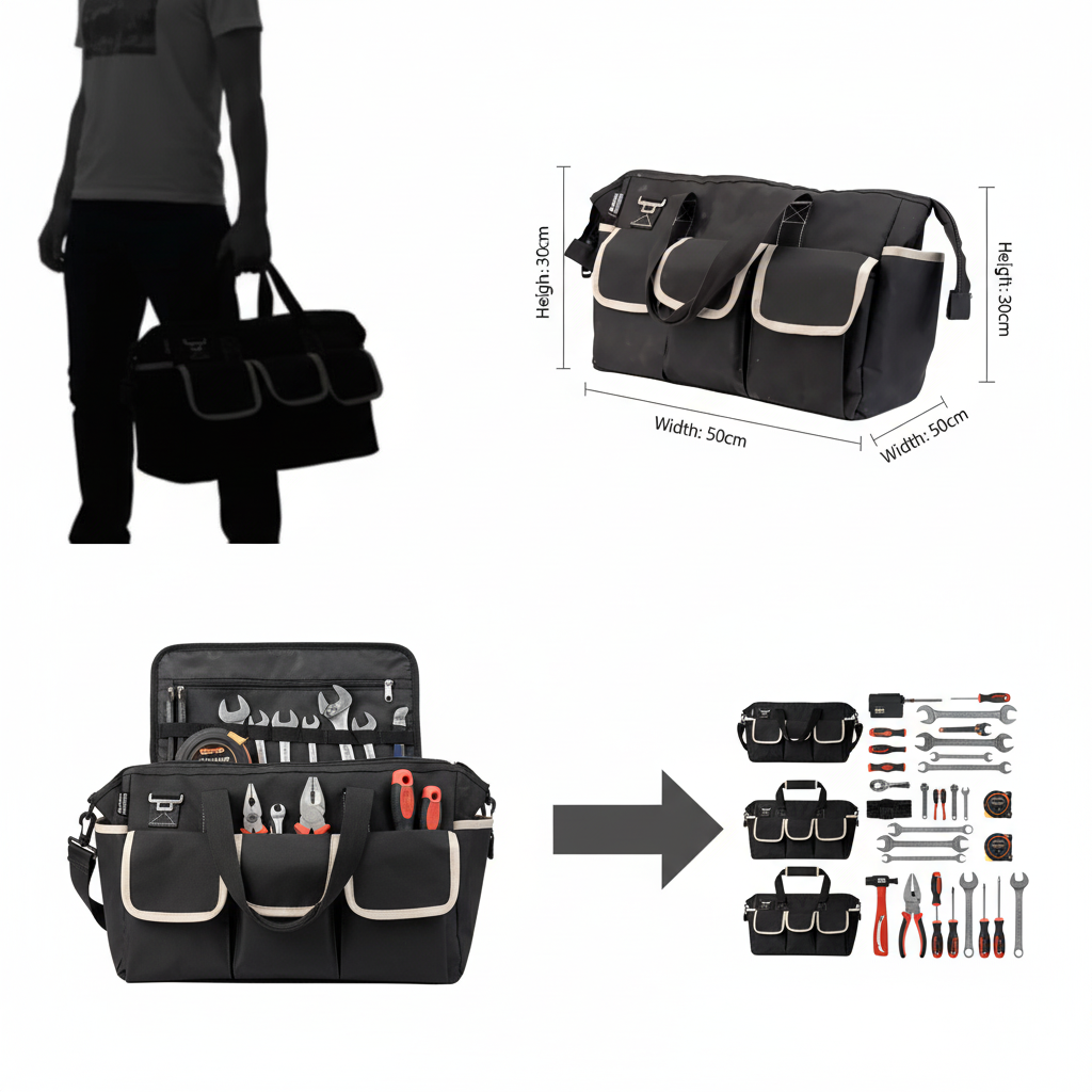 Introducing the Multipurpose Tool Bag, the ultimate solution for anyone seeking to organize and transport their tools and gear effortlessly. Crafted from high-quality, durable materials, this versatile backpack is designed for both professionals and hobbyists alike. Its spacious interior ensures it can accommodate all your tools while keeping them secure and easily accessible, making it ideal for construction workers, electricians, and home improvement enthusiasts.