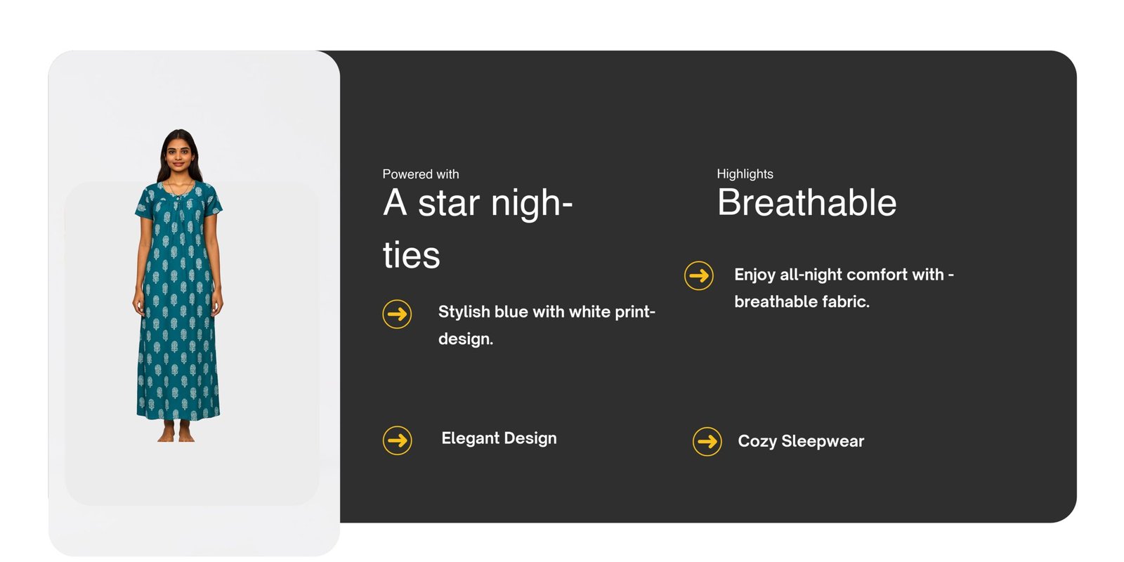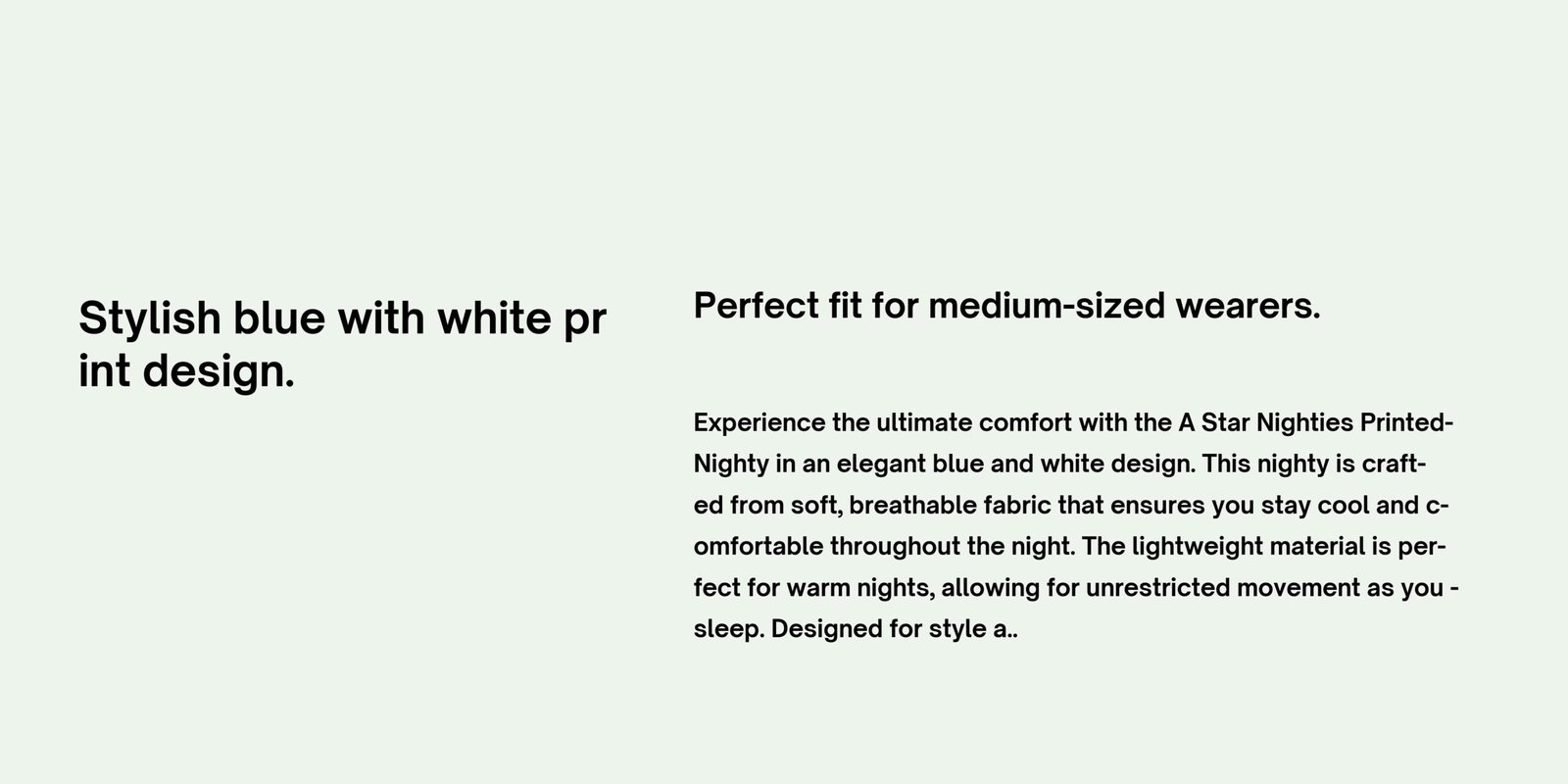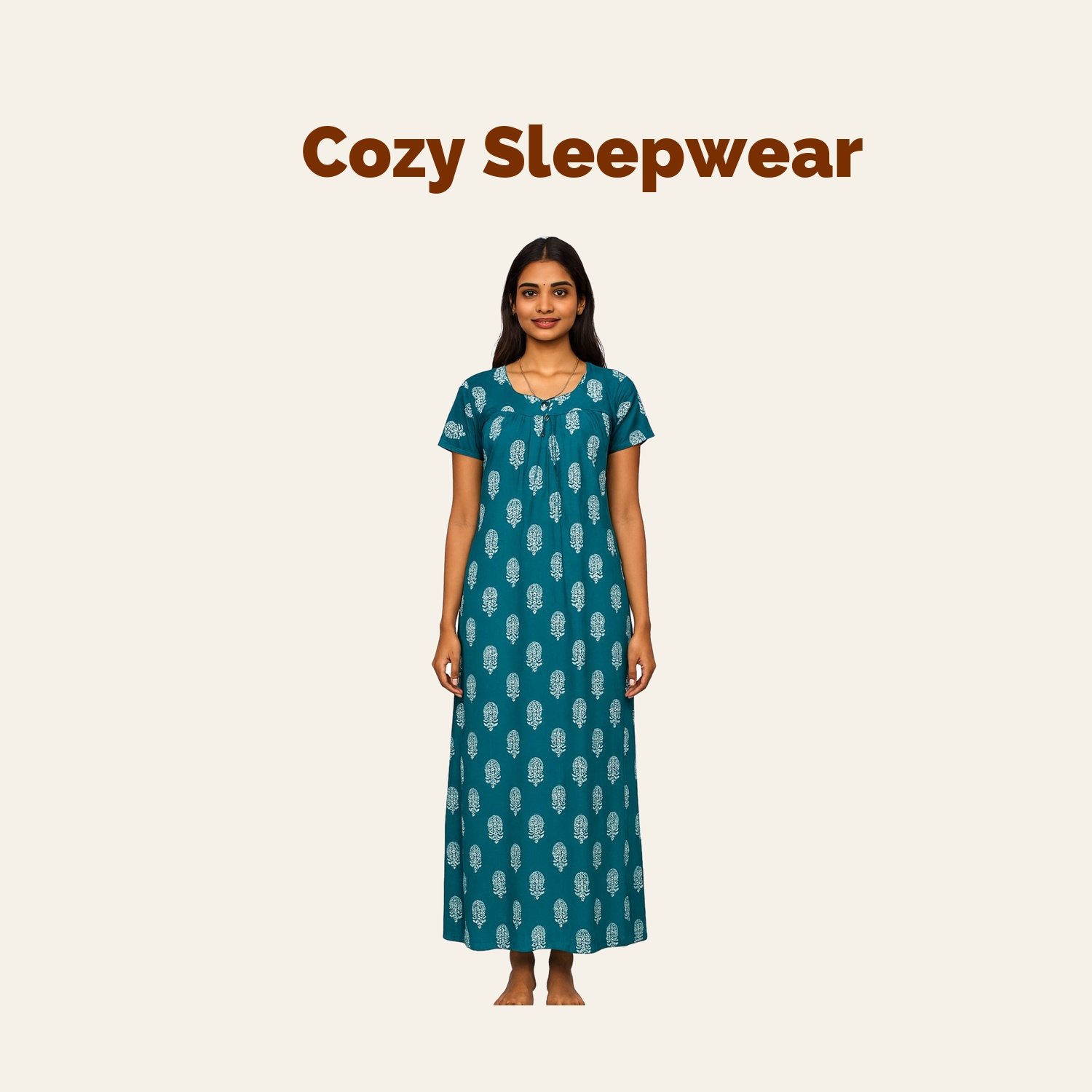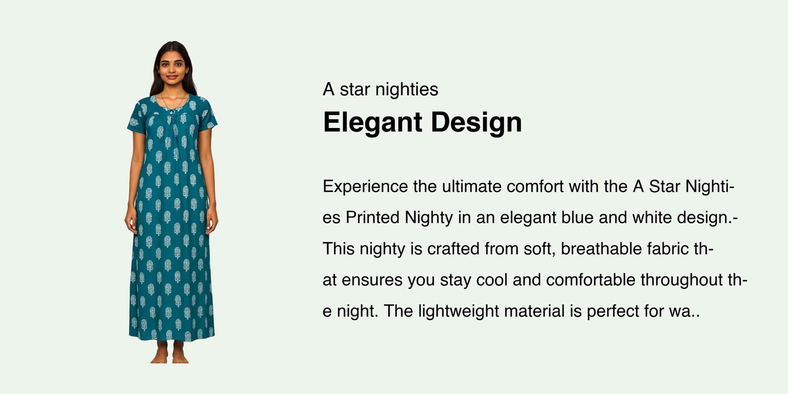 This nighty is ideal for warmer seasons, as the light fabric and airy feel ensure a cool and comfortable sleep. The design is both elegant and practical, suitable for lounging around the house or as a cozy bedtime wear.