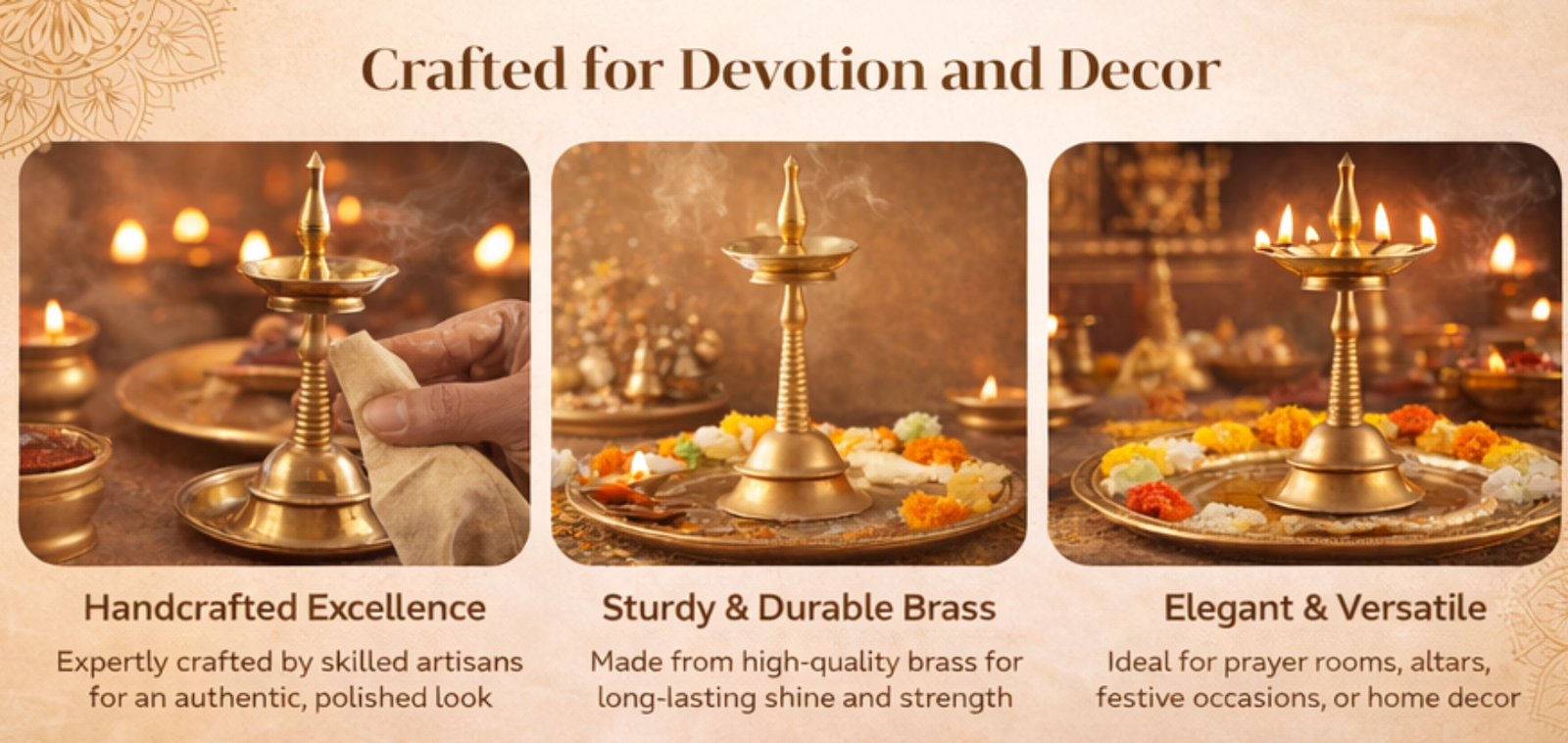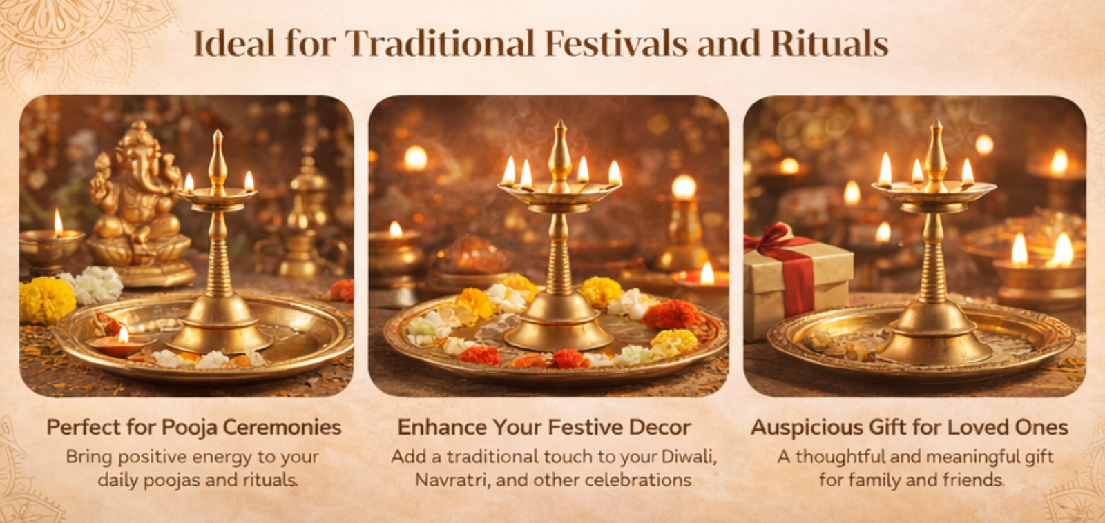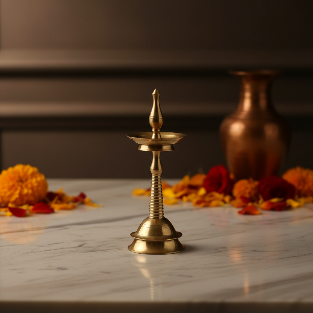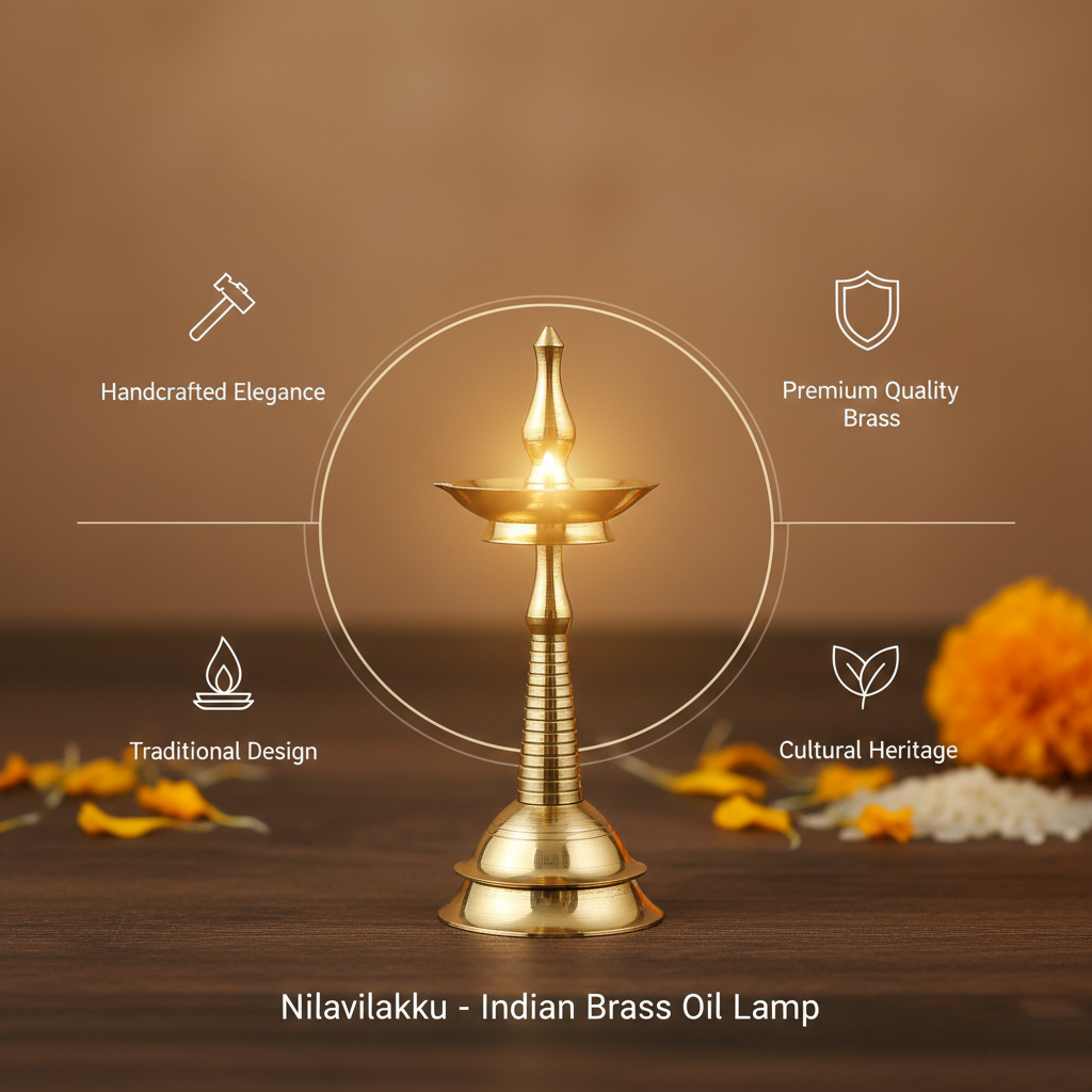 This brass oil lamp also makes a thoughtful and meaningful gift for loved ones on special occasions such as Diwali, weddings, anniversaries, and corporate events. Durable, long-lasting, and easy to maintain, this Nilavilakku is not just a decorative piece but a sacred symbol that brings light, positivity, and traditional elegance into every home.