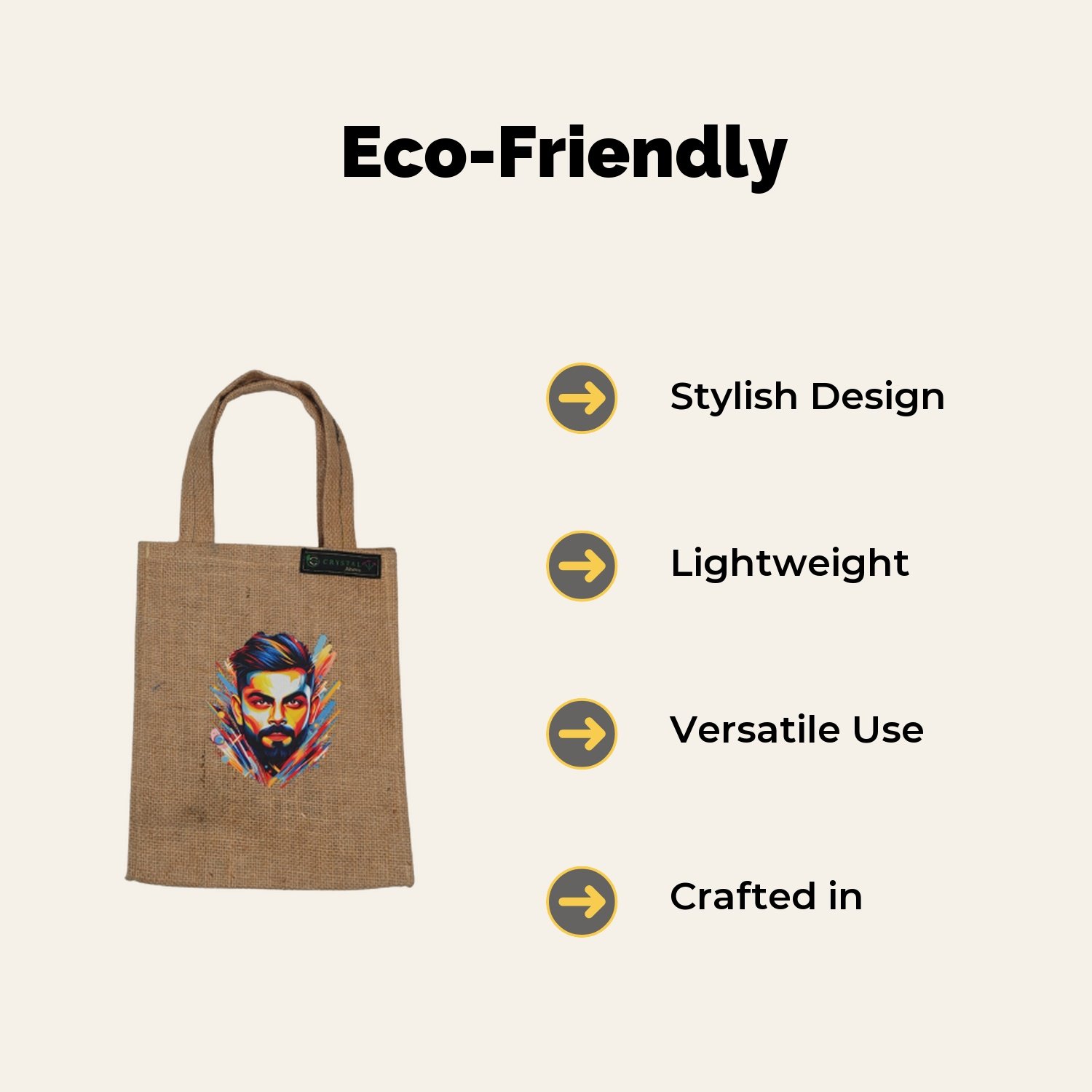 Carry your essentials in style with this eco-friendly Printed Jute Bag. Made from durable, natural jute fibers, this bag combines strength with a rustic charm, making it perfect for everyday use. The vibrant printed design adds a touch of personality, making it both practical and fashionable.
