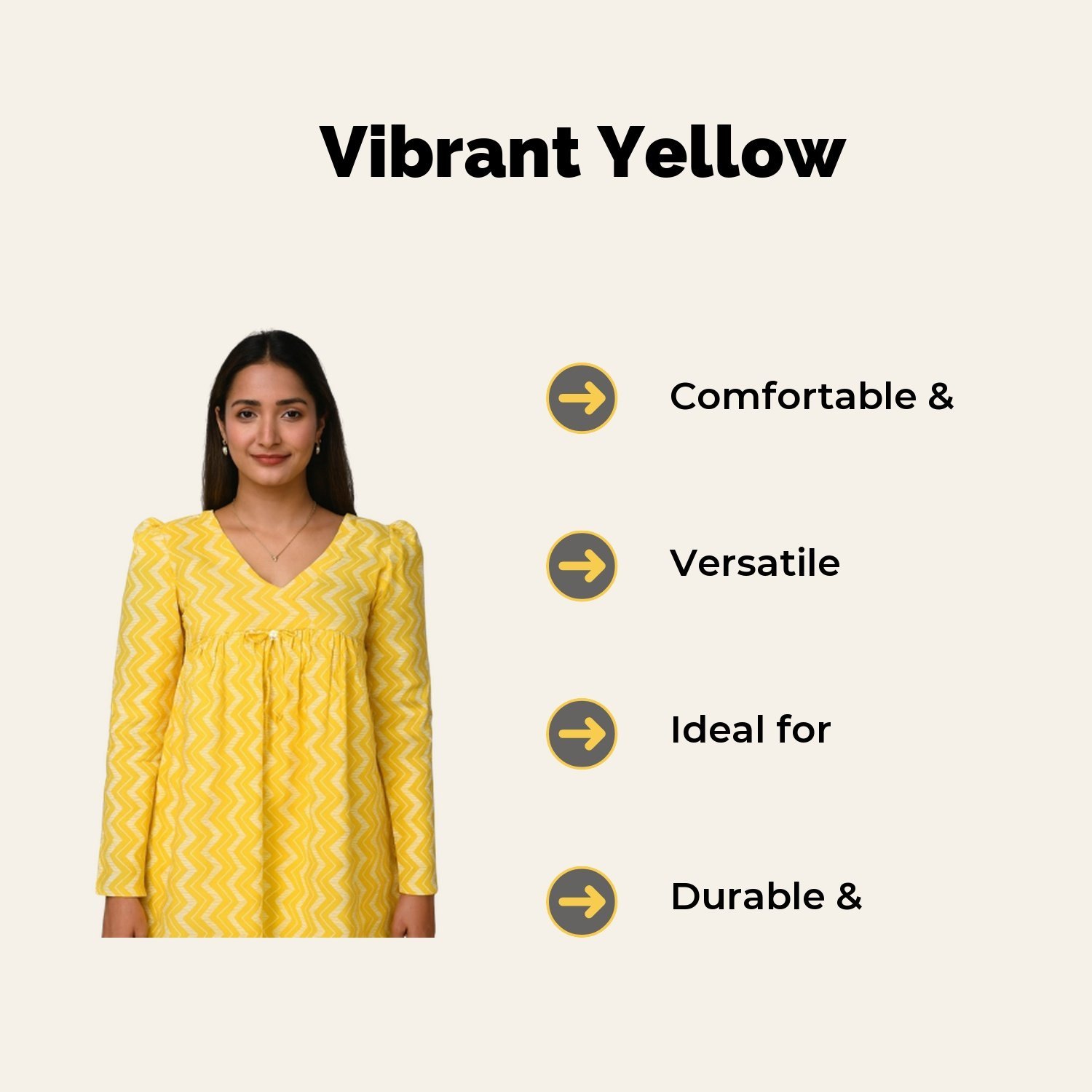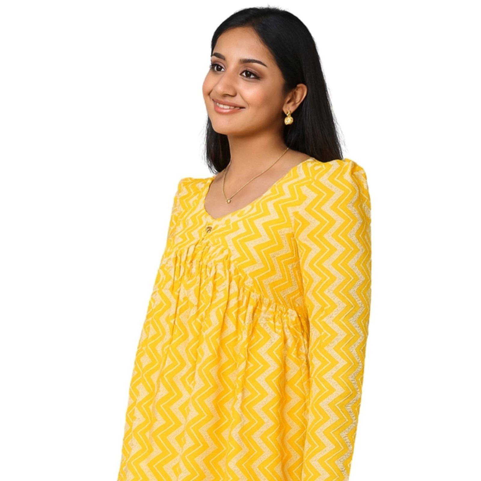 Evergreen Activity Group Short Kurti Yellow – Stylish Ethnic Wear with Flattering Silhouette
