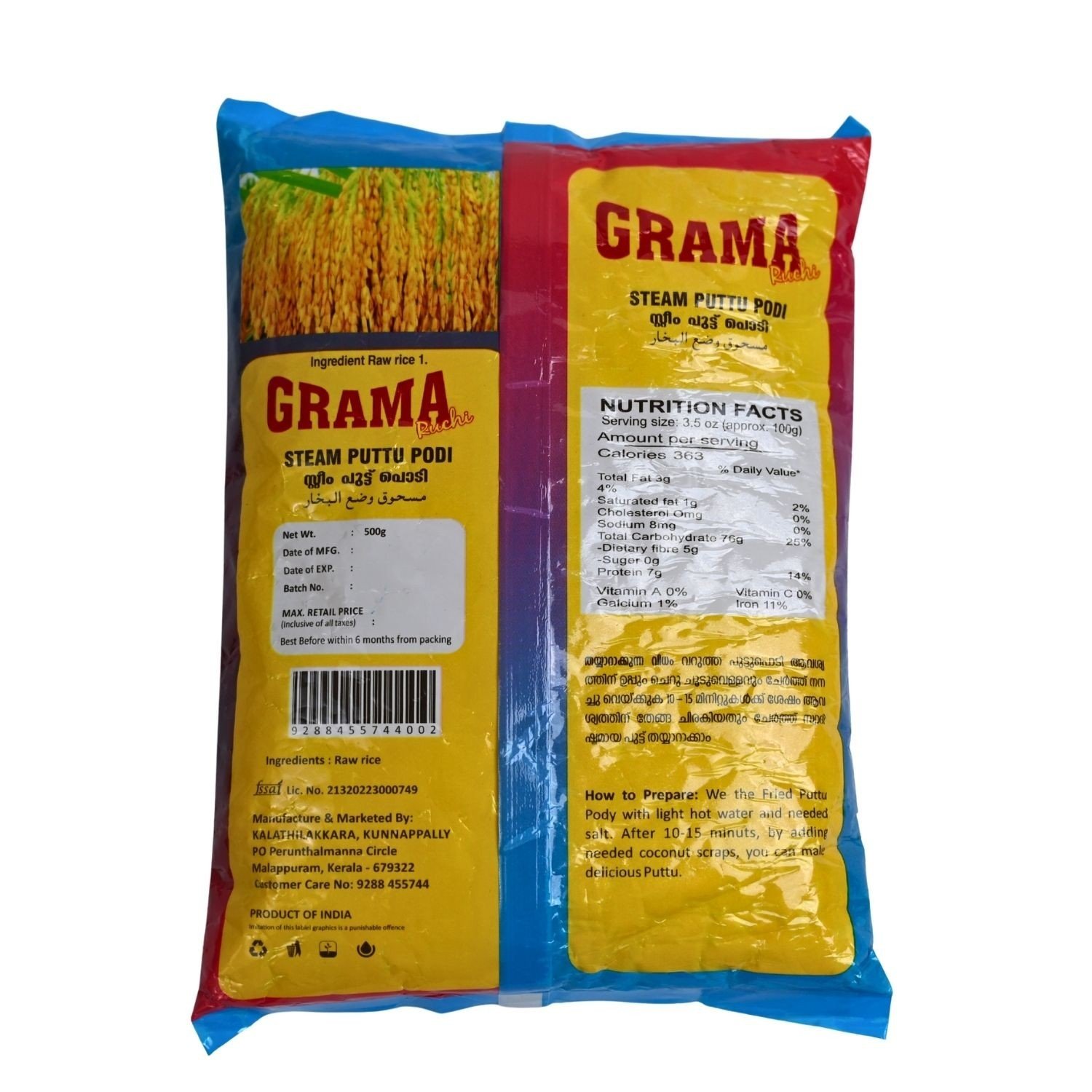 Packed in a convenient 500 gm packaging, GramaRuchi Steamed Puttupodi is a staple in any South Indian household. With a rich heritage of quality and taste, GramaRuchi guarantees a product that meets the highest standards of excellence. Whether you enjoy it alone or as part of a larger meal, this rice flour promises satisfaction in every bite. Perfect for everyday use, it is a must-have for anyone who appreciates authentic South Indian flavors.