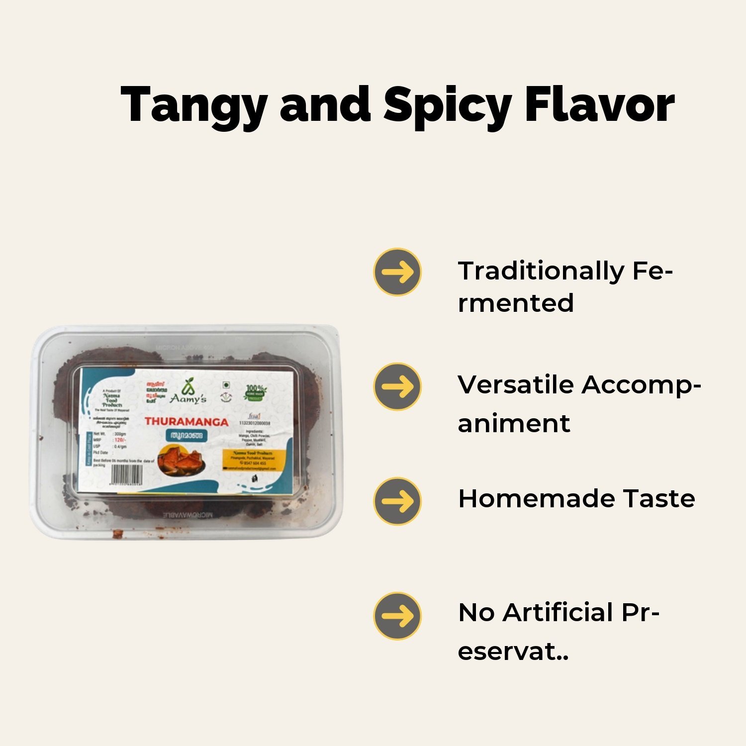 A traditional South Indian delicacy made from handpicked tender mangoes, Thuramanga is known for its tangy, spicy, and bold flavor. Naturally fermented and blended with aromatic spices, it’s the perfect sidekick to rice, curd, or dosa. Every bite bursts with authentic homemade taste
